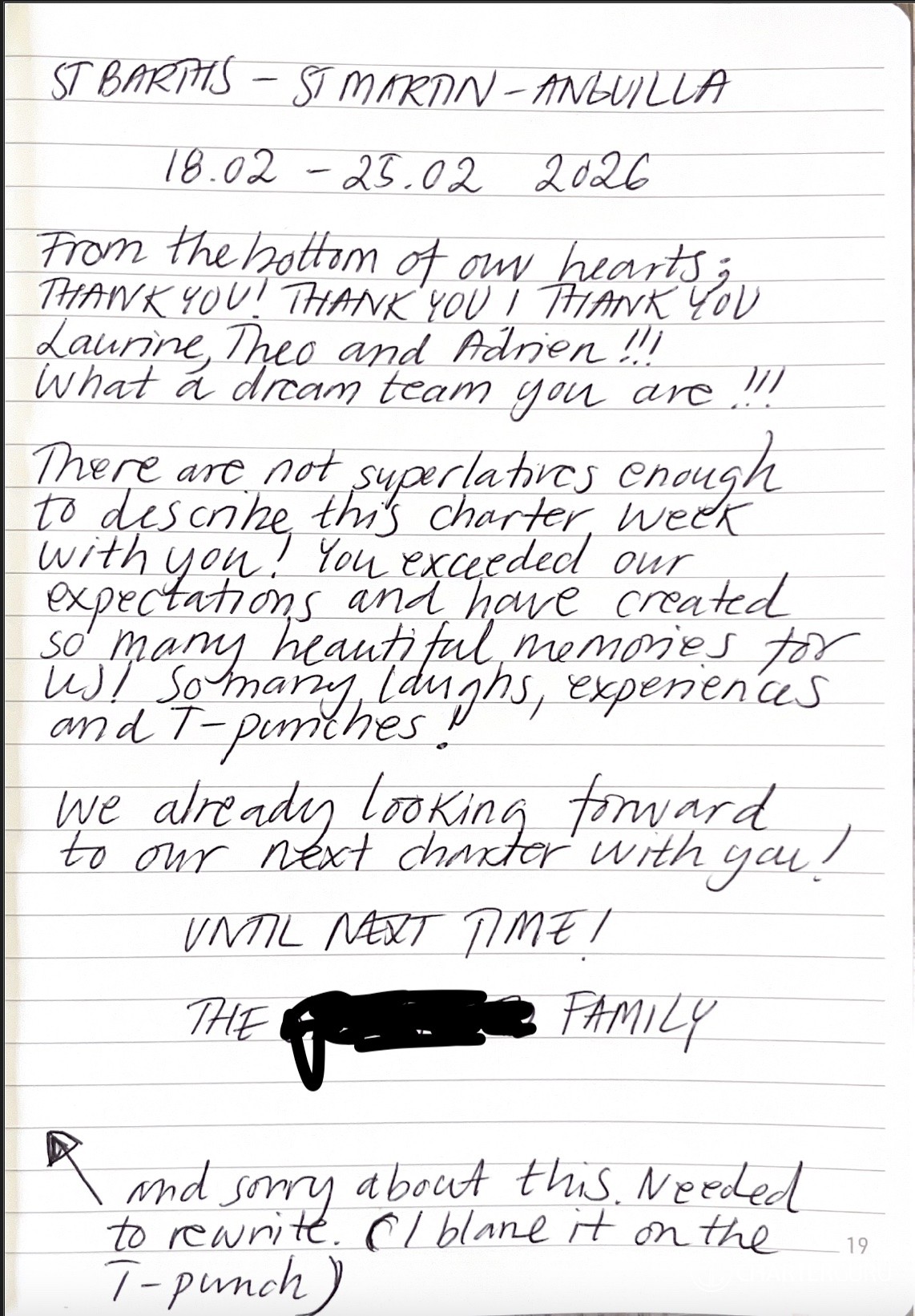 There are not superlatives enough to describe this charter week with you ! You exceeded our expectations and have created so many beautiful memories for us