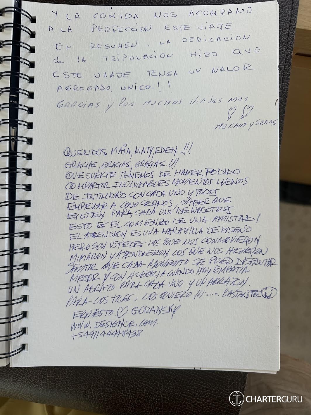 Thank you so much for helping us have the most amazing vacation that we will never forget. From Matias' knowledge to Maia's beautiful personality and talent, and our favorite chef Eden, with his amazing culinary skills!! Miguel and I loved our daily talks with you. May our paths cross again!