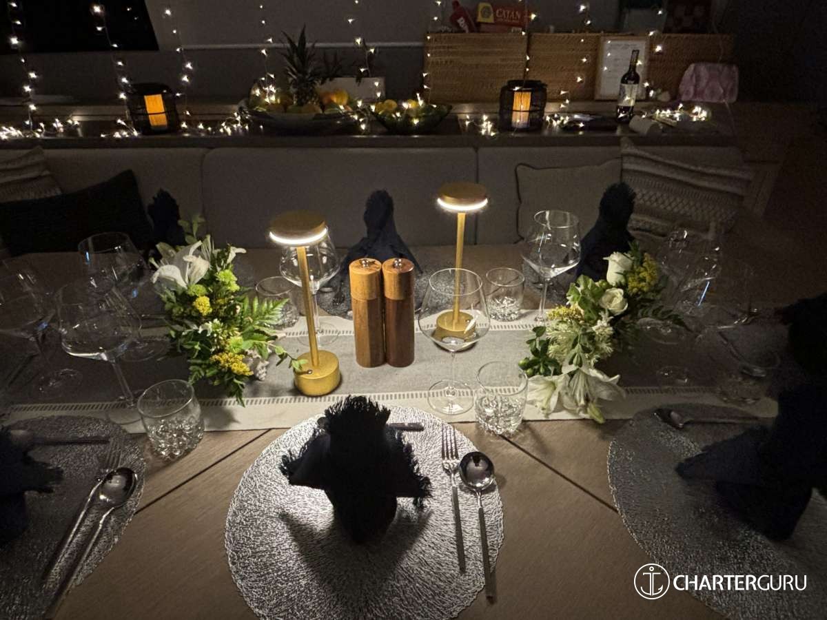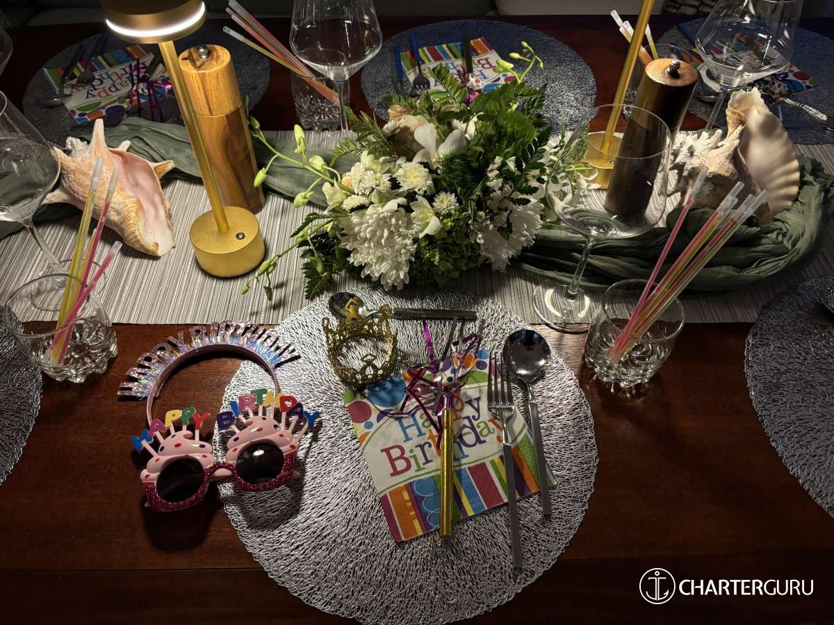 Thank you, thank you for your delicious cocktails, meals, a captain totally knowledgeable of the yacht and history of the islands, Julia who takes care of our every need, and a chef that is out of this world with flavors and presentation.