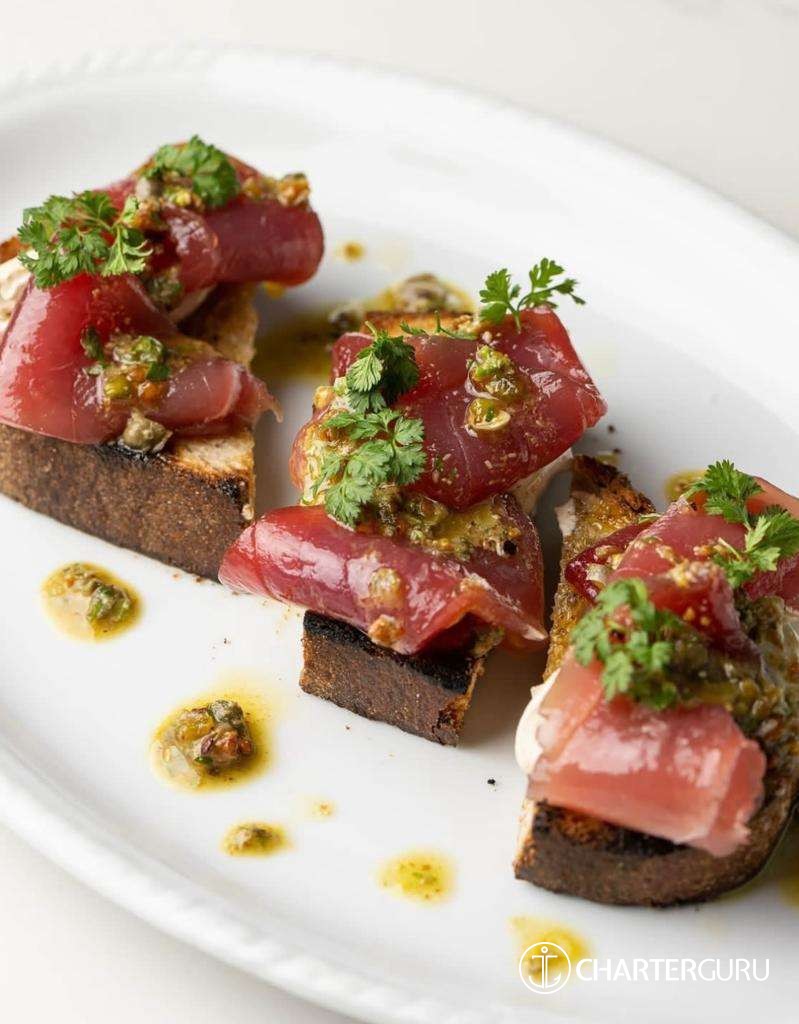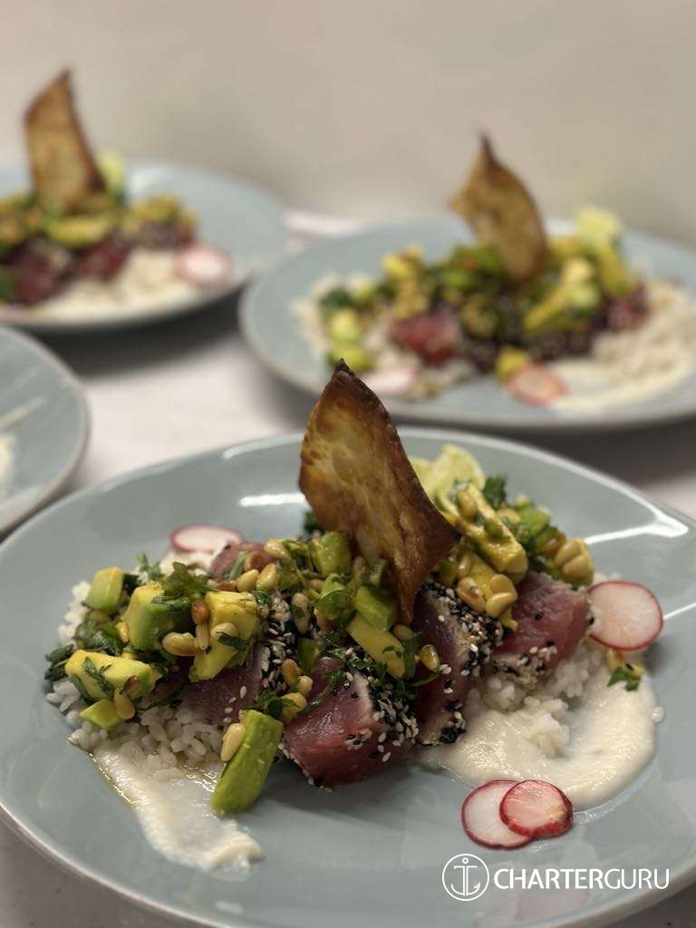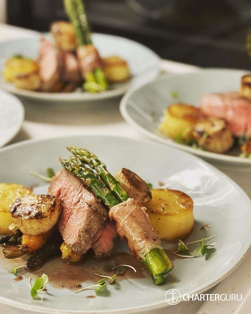 Her favourite type of cooking? Fresh, healthy and vibrant dishes whilst saving a little room for dessert.. because everyone knows we don’t count calories on the water.