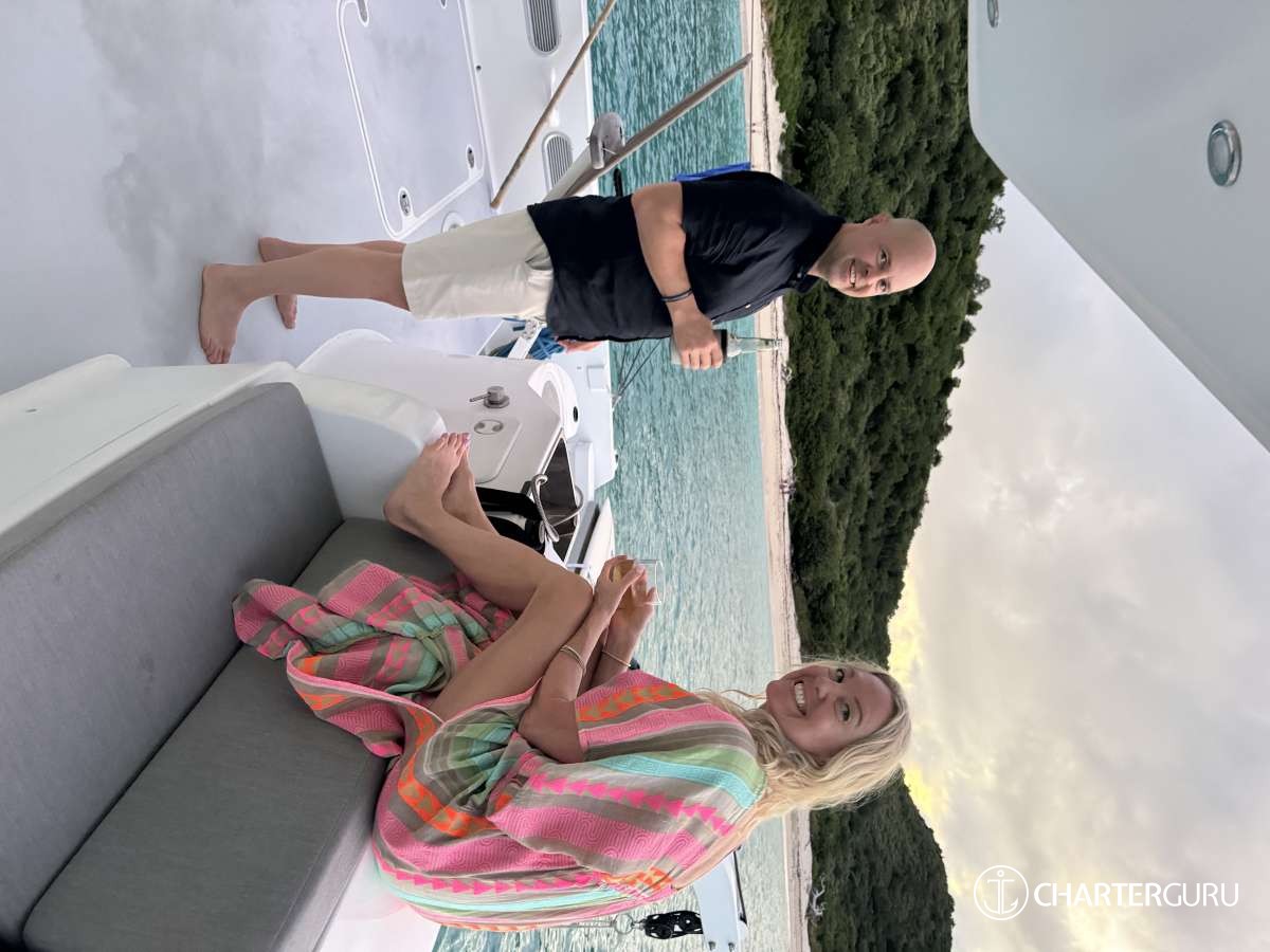 The crew was absolutely delightful. Captain Fraser was an excellent captain who showed us many beautiful beaches and snorkeling spots. He found a perfect windy spot for Kenny to kite-board, twice.