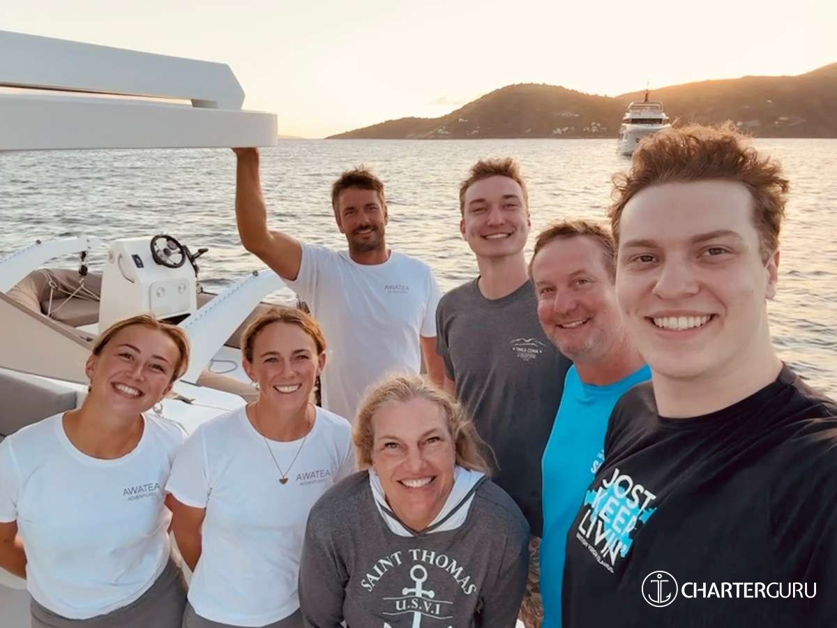We are home now. Just wanted to leave you a review. Our family had a wonderful week on the Awatea with Fraser, Olivia and Jess. They are high quality individuals with a wealth of sea going experience. They are kind and friendly hosts, hard working and their presentation is on a professional level. They are personally experienced in sourcing farm fresh meat, fish and produce, grow their own herbs and presenting the most well made highly nutritious 5 star meals. Olivia baked fresh bread for us multiple times a day. Jess kept us from going thirsty and made us the most delicious drinks. Fraser is a highly skilled captain, fisherman and expert on the ocean. Each day we sailed and explored all there is to see in the BVI, they took our kids tubing, efoiling, snorkeling, we all paddle boarded and enjoyed swimming, playing and laying about in the ocean. Definitely a life changing experience that we won’t soon forget.