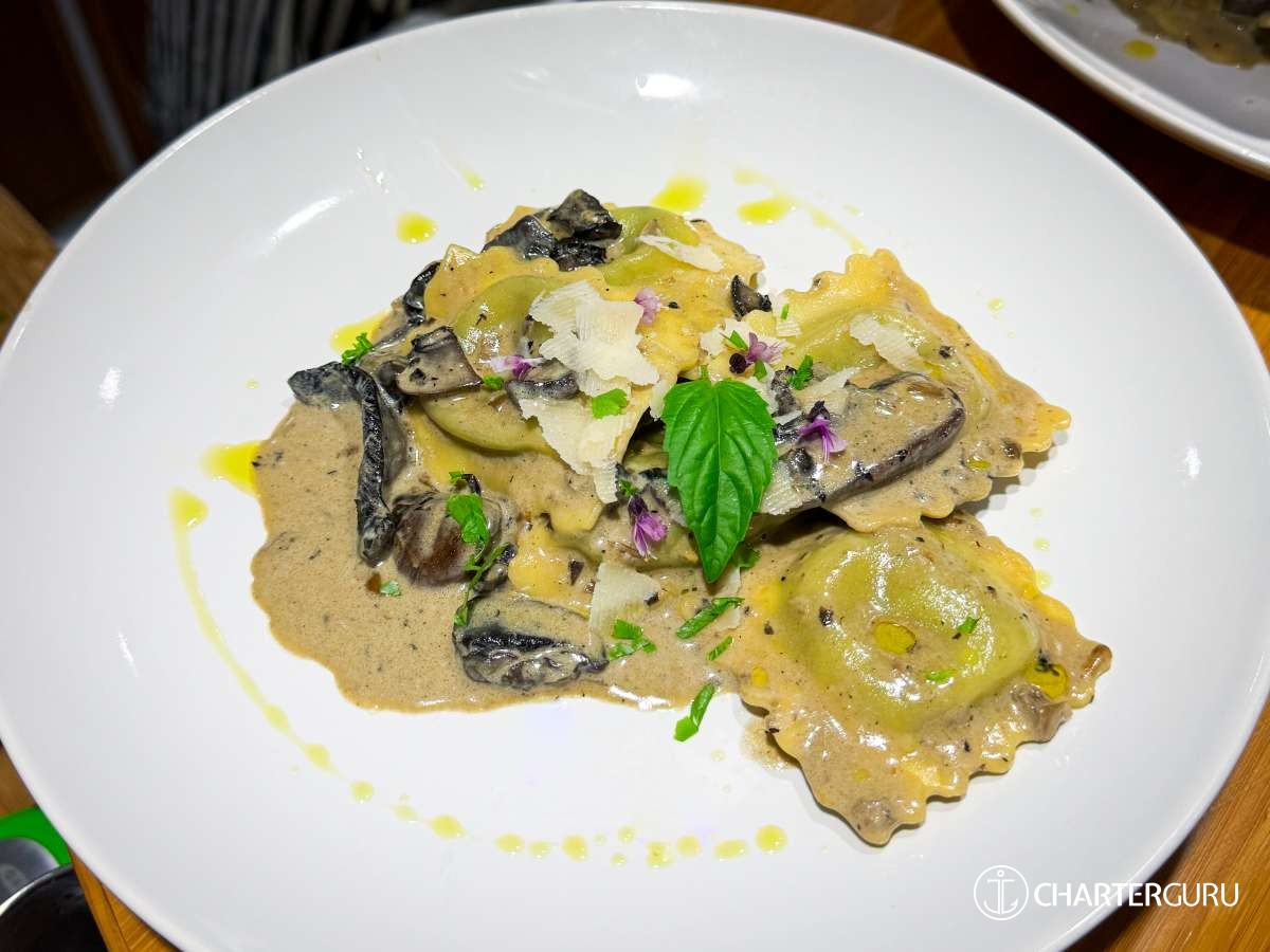 We ate dinner off the boat twice. First was a cool outdoor bar/ patio called Nova at Oil Nut Bay. The decor was really well done, the food & drinks were great. The “sushi boat” was a beautiful presentation as an appetizer. The 2nd night off the boat we went to Peter Island and had dinner at the newly renovated and recently opened Drake’s Steakhouse. Beautiful venue and great menu and wine list.