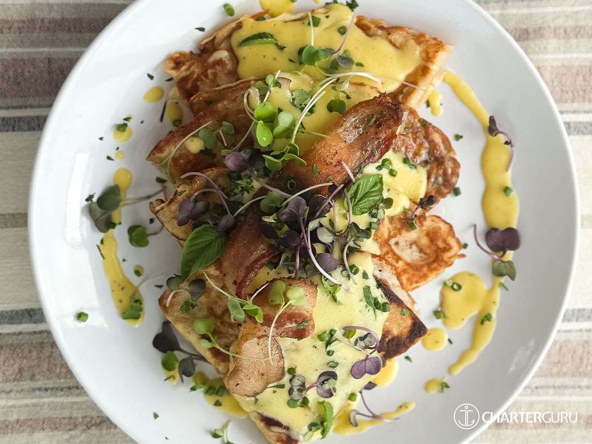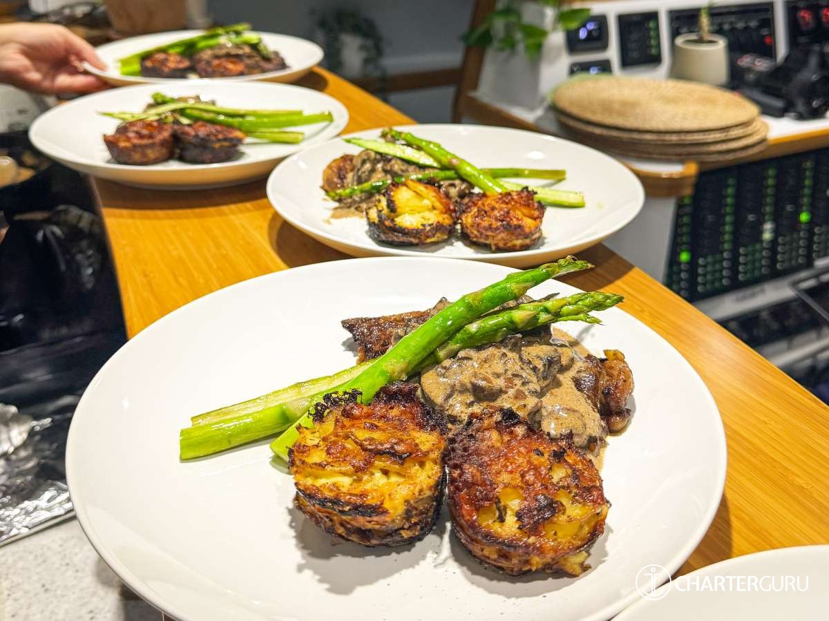 A gap year in Spain not only meant Olivia became fluent in Spanish but it also introduced her to the flavours of Europe. That and further overseas travel is reflected in her culinary style which infuses global influences. Guests frequently comment on the variety of cuisine as well as the abundance of meal components that are made from scratch. After her years living on the ocean, she understands what people crave after a full day in the sun.