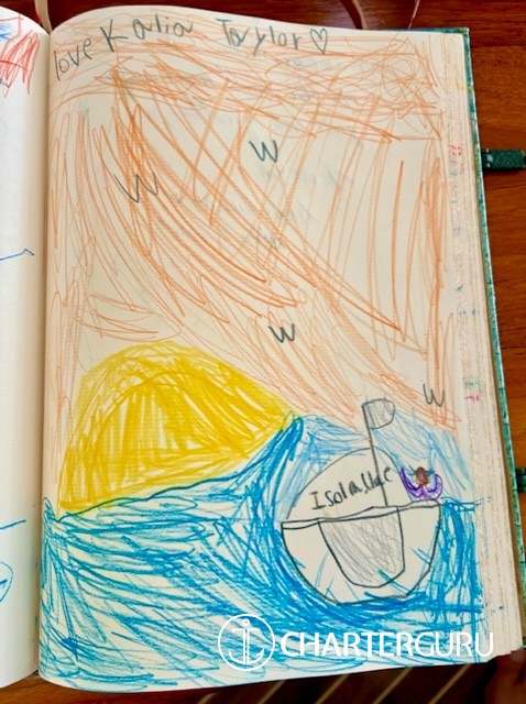 We had imagined our vacation before our arrival ... But it was not counting on your generosity and your kindness. Isolablue is a very comfortable catamaran to live on and we felt completely at ease. The day-to-day life will be difficult after having traveled so many miles. Astrid you have feasted us with your excellent dishes from morning to evening and the pretty culinary decorations for our ´Loulou´ were amazing. You radiate happiness and that´s great to see. Thank you for these moments, these breathtaking landscapes, these helpful tips ... We leave enriched from this vacation and convinced that we like the boat life, especially since no one has been sick and we found now our sea-legs.