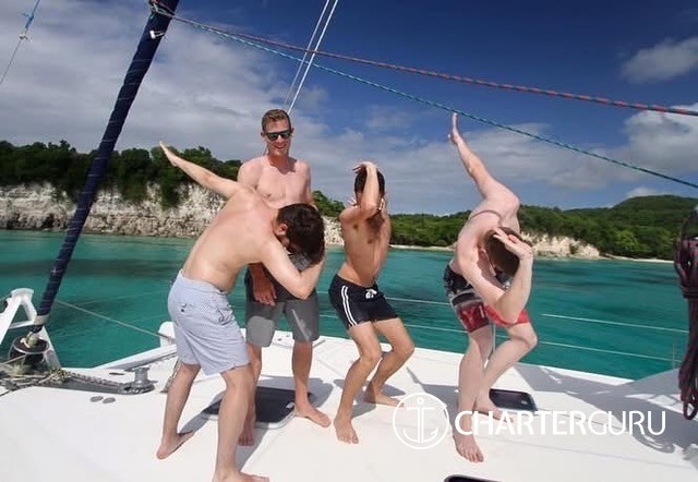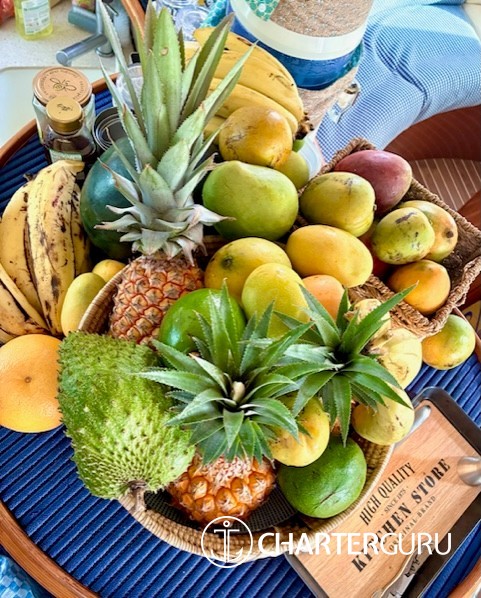 The large cockpit is the preferred spot for dining al fresco with magnificent views. Easy access to wide transoms makes launching water toys and diving into the Caribbean Sea effortless fun, even for children. Snorkeling or diving right off the yacht is spectacular. Captain Laurent is a licensed PADI instructor and Chef Astrid is a licensed PADI Divemaster. They offer one "discover scuba diving" or a dive per person for a minimum stay of seven nights. Award-winning Chef Astrid took first place at the 2018 Grenada Charter Yacht Show Culinary Competition.