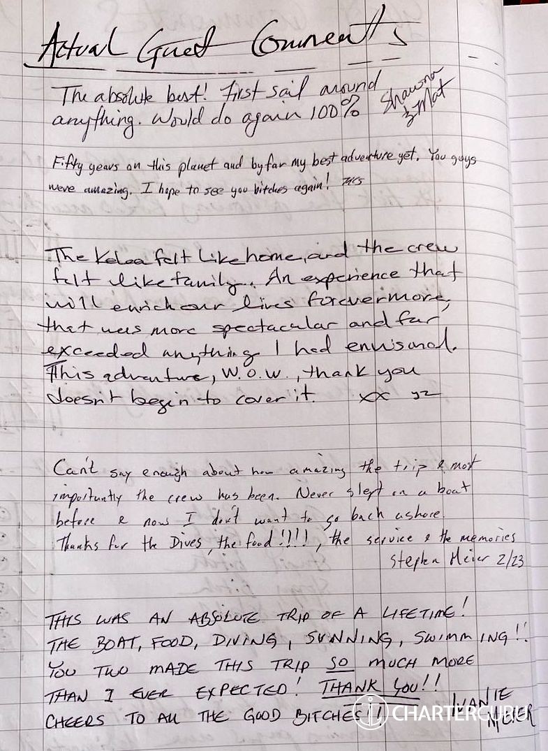 My wife and I highly recommend this boat but more importantly - this crew - for your dream vacation and the time of your life!