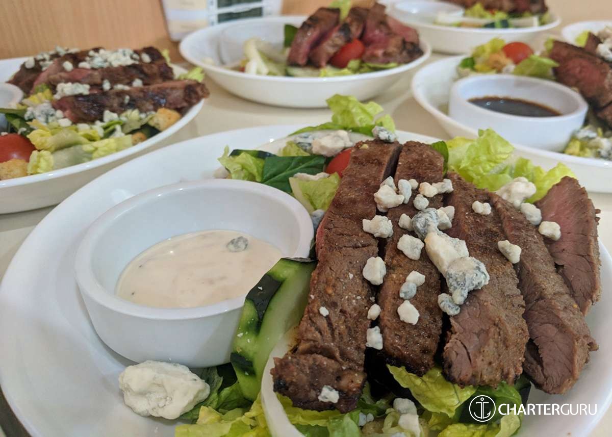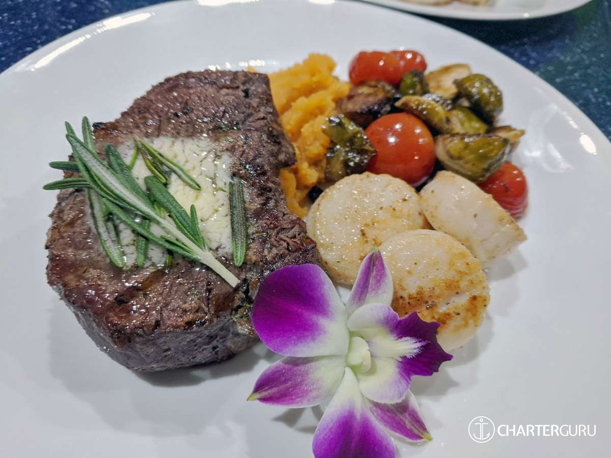 Includes boarding after 4pm, snacks, welcome cocktails & continental breakfast. Dinner is to be taken ashore at client expense.