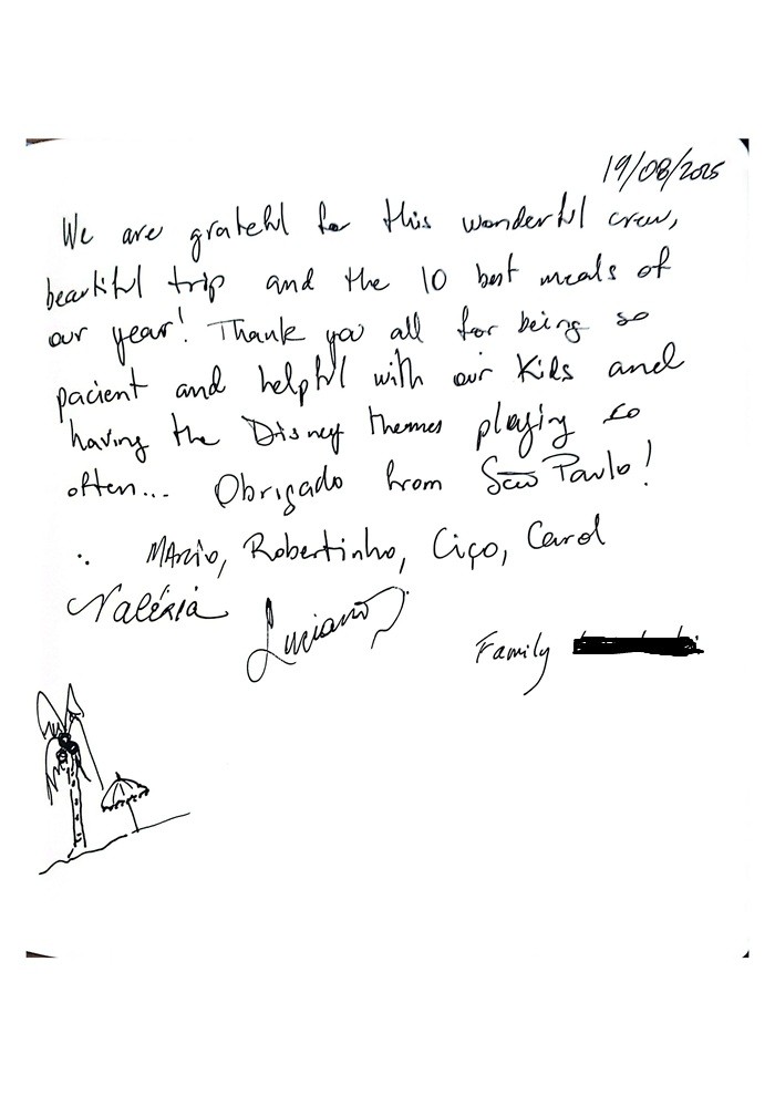 Thank you so very much for a very wonderful week aboard Looma yacht!