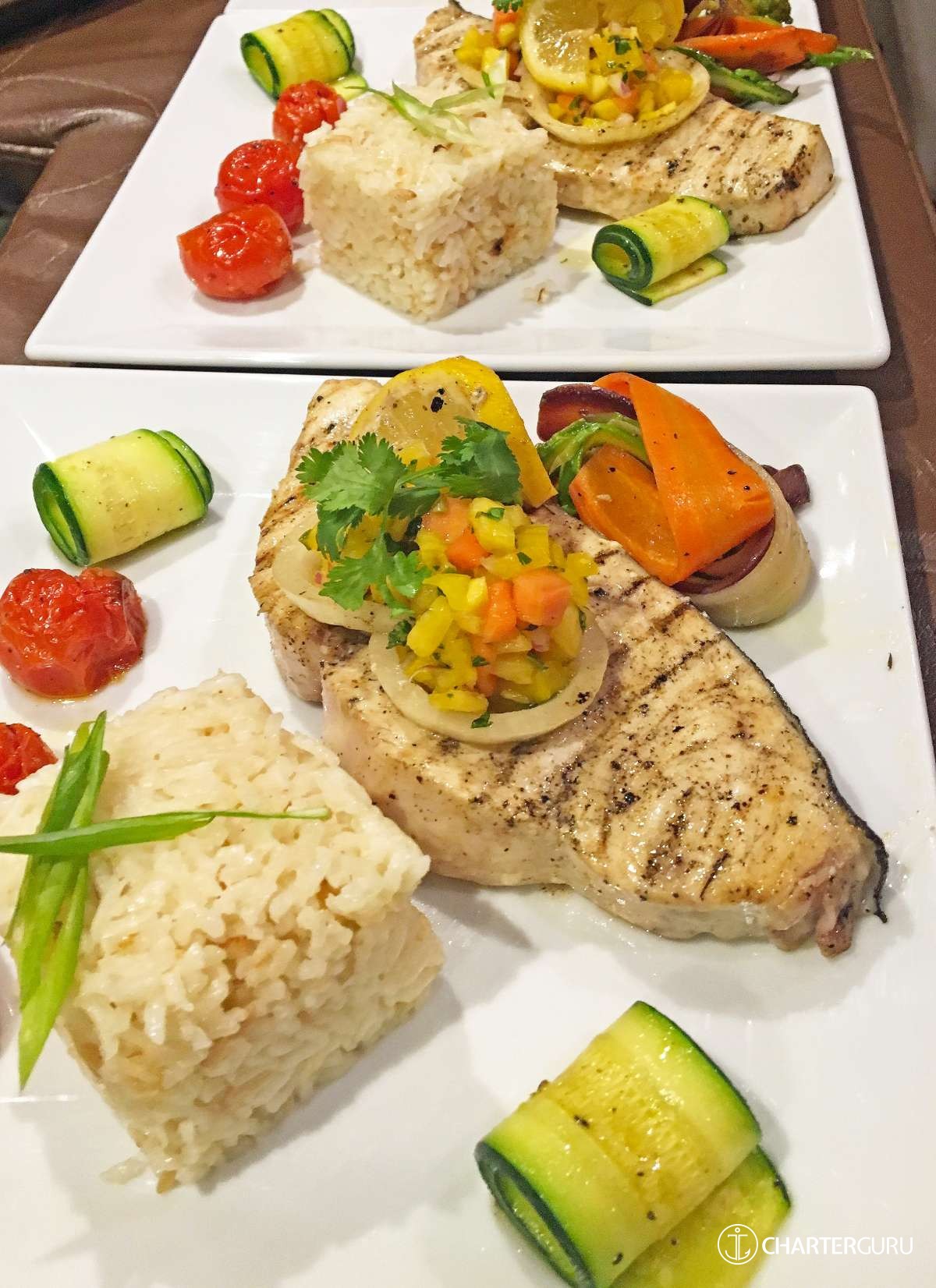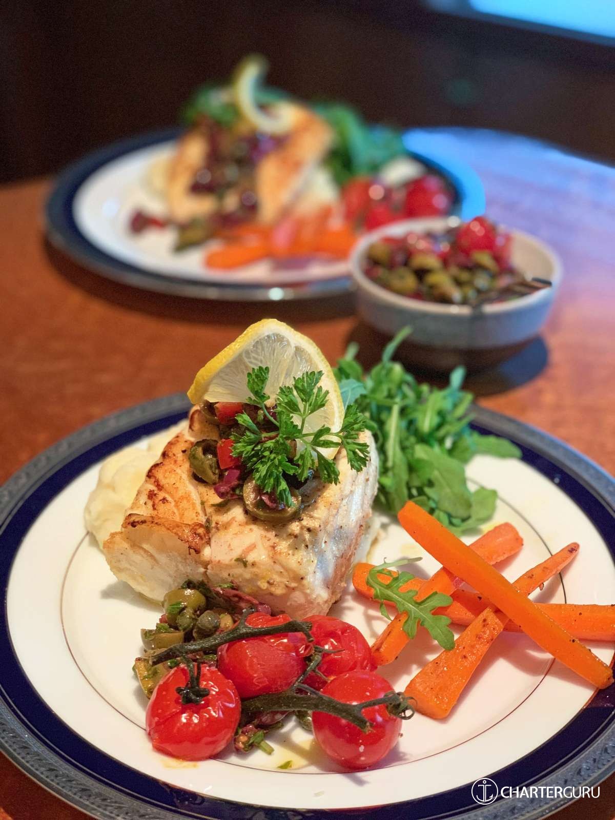 We’re so happy we could tag along for this week in Paradise! Mike and Jenn Jenn are a marvelous team, whose fast reaction/interaction on deck and in the kitchen is a joy to behold. Loved the nice choice of spots, the beautiful weather and clear waters. The helpful instructions, and, of course, the Food!