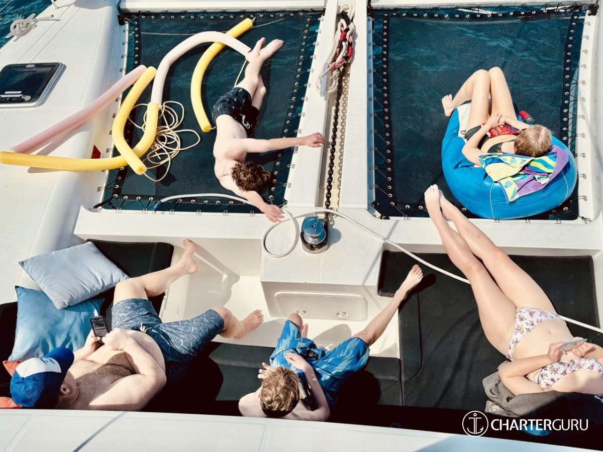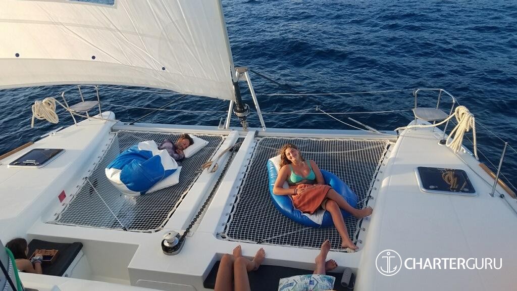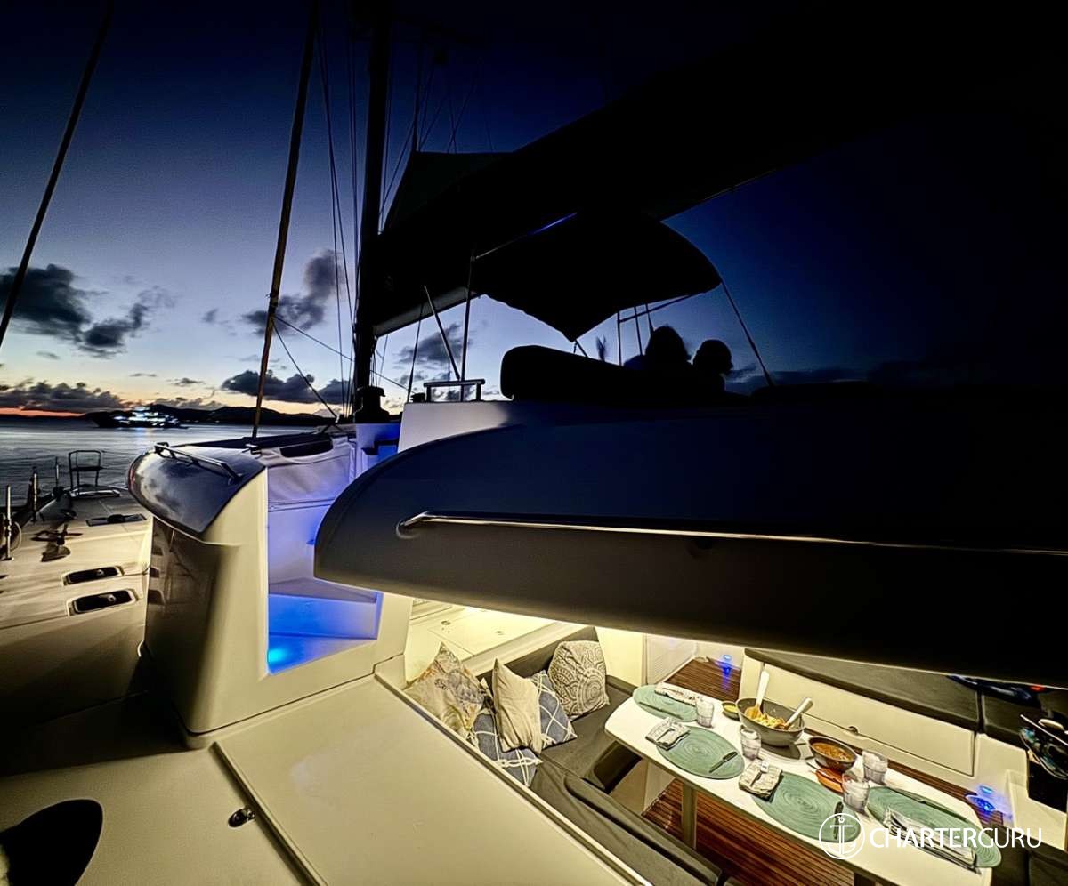 RAPSCALLION is offered primarily as a sailing catamaran. The the heart of the yacht is the main saloon, which connects to the aft deck. The aft deck is generous, with a prominent dining and seating area and that's where most of the delicious meals are served. The immersive cabins are located in the 2 massive hulls. The cabins are located below the main saloon, connected by stairs (inquire about handicapped access). Multiple portholes offer desirable views, while providing privacy if needed.