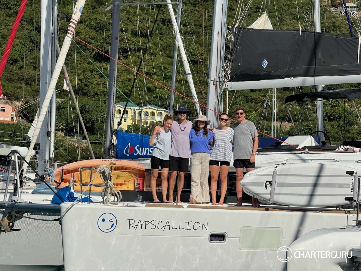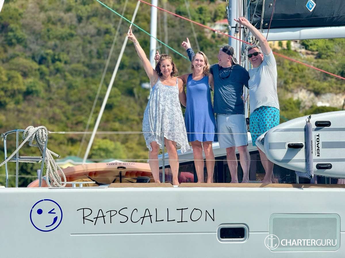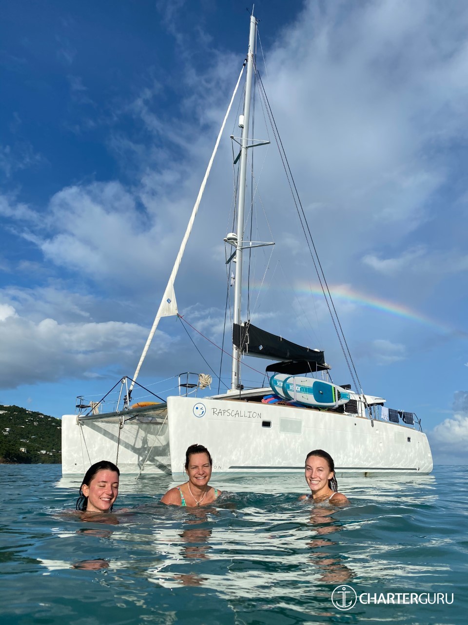 Rapscallion is a superb example of a 2018 45' Lagoon Catamaran with 3 queen cabins each with private ensuite baths including electric heads, vanity and separate showers. She boasts multiple areas for all 6 guests to sit and relax or sip a cocktail and enjoy the cool trade winds of the beautiful Virgin Islands! Furthermore, the salon has more than enough space for all guests to be comfortable for lounging or dining. The exterior aft deck also offers alfresco dining for 6 guests, top deck seating and a lounge area in front of the helm plus a forward lower deck lounge area behind trampolines. Water toys include snorkeling gear, floating mats, two stand-up paddleboards, and 2 fishing rods. Rapscallion and its award-winning crew offer nothing less than a charter of a lifetime!