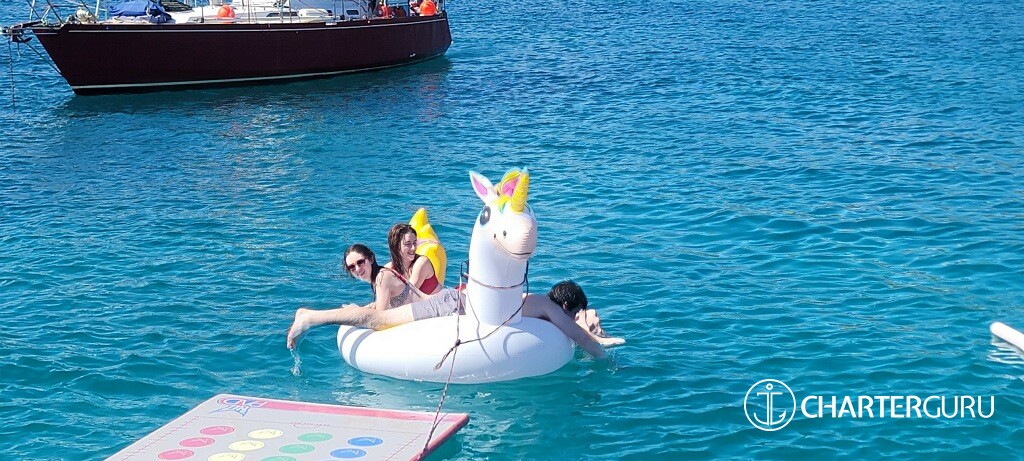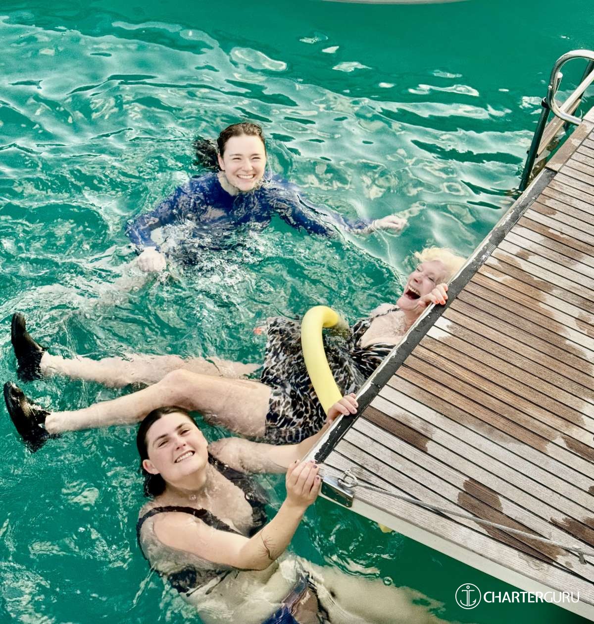 I’m the first to fall off Felicia, but apparently not the first to accidentally dump technology overboard. Thank you for rescuing my GoPro when I dropped it in the dark, minus its floatie bubble case. Thank you for tolerating our (slightly drunken) whim to night snorkel, inspired by the underwater flashlight/GoPro incident, and wisely advising how to do it safely (noodles and buddies), and then killing the boat lights and blasting out the Jaws theme-tune as we swam back (OMG we laughed!).