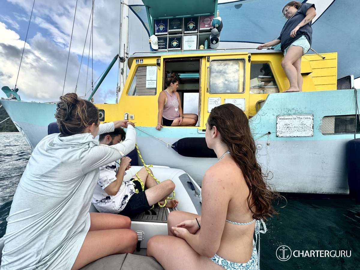 From the moment we stepped foot on the yacht we left the world behind..... When asked about sailing, Ryan’s grin was a sign of what the next 8 days would hold. He went from expert sailor, to fishing guide, to dive buddy, scooter leader, master griller, pro snorkeler, history teacher, and dance moves that stop fish from swimming just to watch. Maybe his best move ever though, was finding Stephanie to be his mate. No sea too rocky for our little spider-monkey to keep our drinks full, and our giggles endless. She delighted us with 5-star meals, made with 5-star love. She makes mooring the boat look as effortless as her mouthwatering desserts... Words cannot express our gratitude to Ryan and and Steph for making this experience as beautiful as the surroundings blue sea. Best of all, are the memories we now hold near and dear to our hearts, and the new friendships that will span for years to come. Thank You for an adventure of a lifetime!!