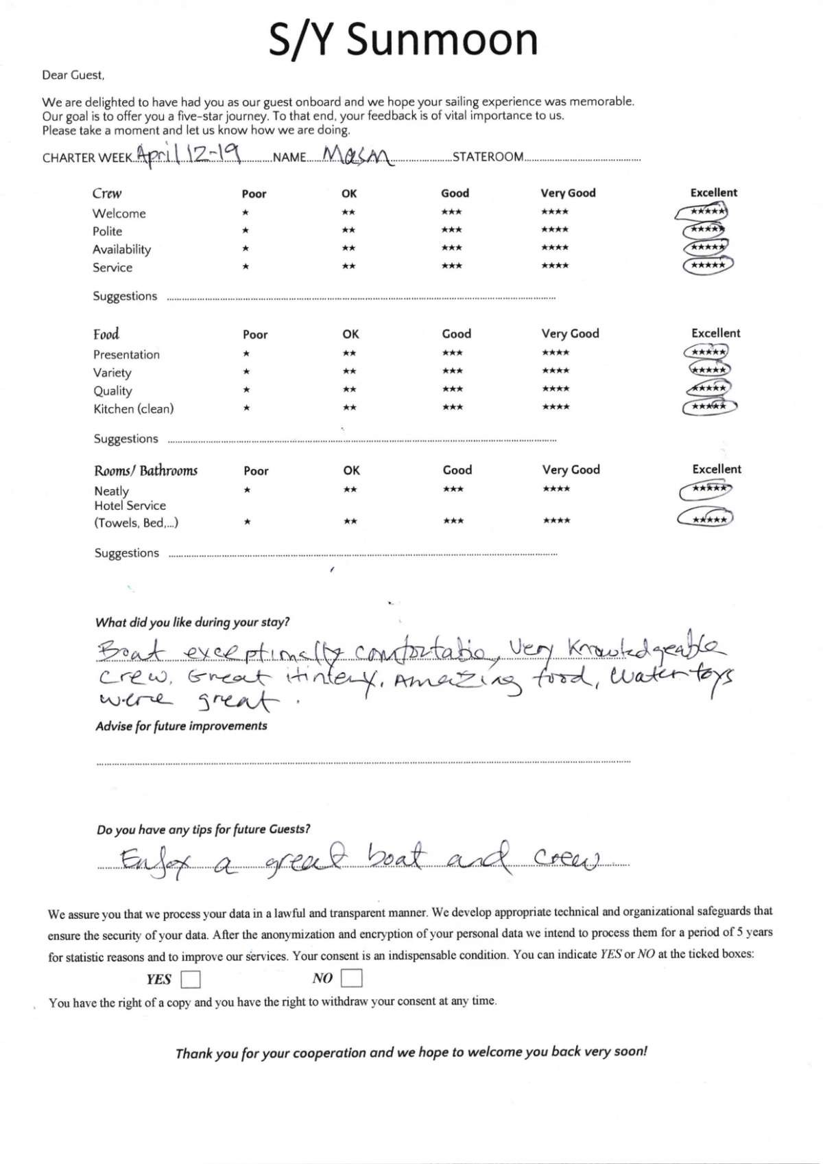 SUNMOON Yacht Description